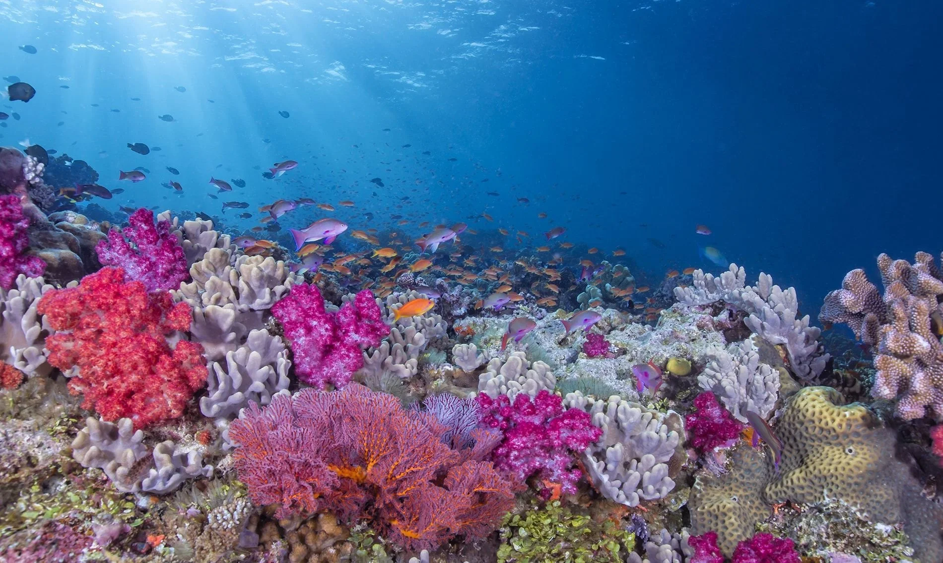 Intimate Reefs & Canyons: Explore intricate swim-throughs, caverns adorned with sea fans, and drop-offs that plunge into the abyss, each teeming with life from tiny, jewel-like nudibranchs to schools of barracuda.
